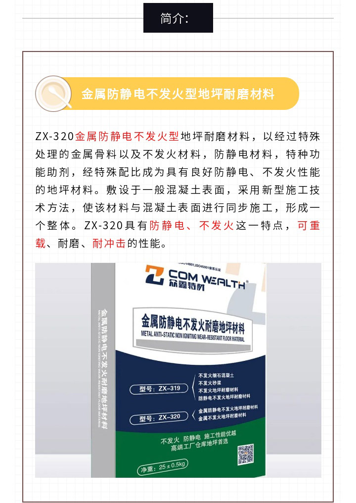 ZX-320金屬防靜電不發(fā)火地坪耐磨材料